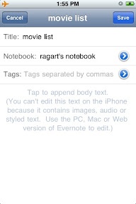 Sometimes I can’t even get the edit button to work, and when it does work the text may not necessarily be appended to the note I’m trying to edit. I keep a list of movies I want to watch in Evernote and it’s written in plain text without any formatting. However, when I try to add to it while offline the app tells me that it contains some sort of data (pic, audio, rich text) that can’t be edited on an iPhone, so the text I write will be added as a note at the bottom.